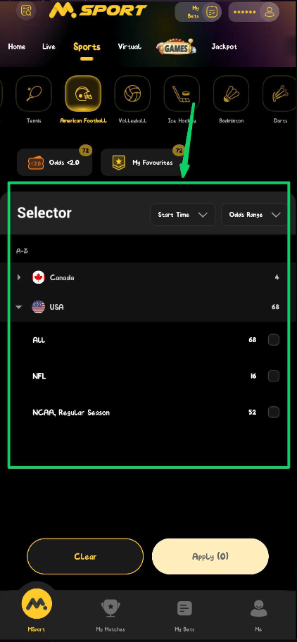 HOW TO LOCATE AMERICAN FOOTBALL ON MSPORT