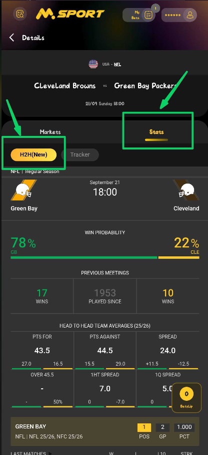 STEP 1. Choose the league or competition (e.g., NFL) and pick a match.