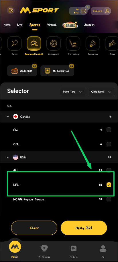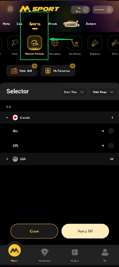 HOW TO LOCATE AMERICAN FOOTBALL ON MSPORT