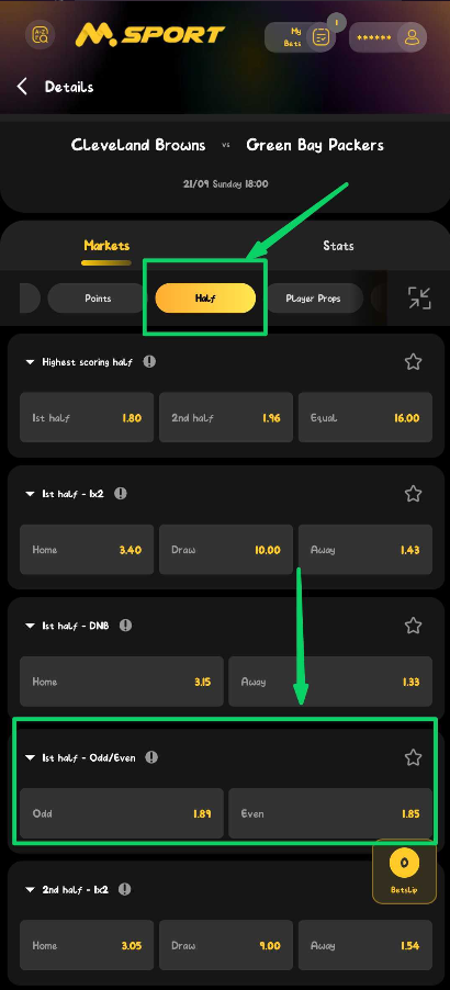 FIND THE STEP-BY-STEP GUIDE ON HOW TO BET ON 1ST HALF ODD/EVEN ON MSPORT