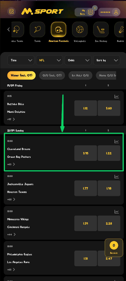 STEP 1. Choose the league or competition (e.g., NFL) and pick a match.