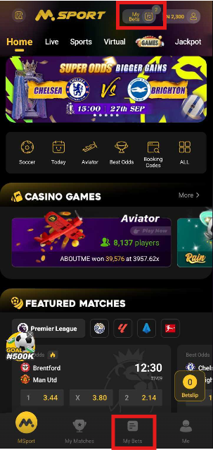 On the home page, click on "My bet" this option can be seen either at the top towards right side of the page or at the bottom towards the right side of the page.