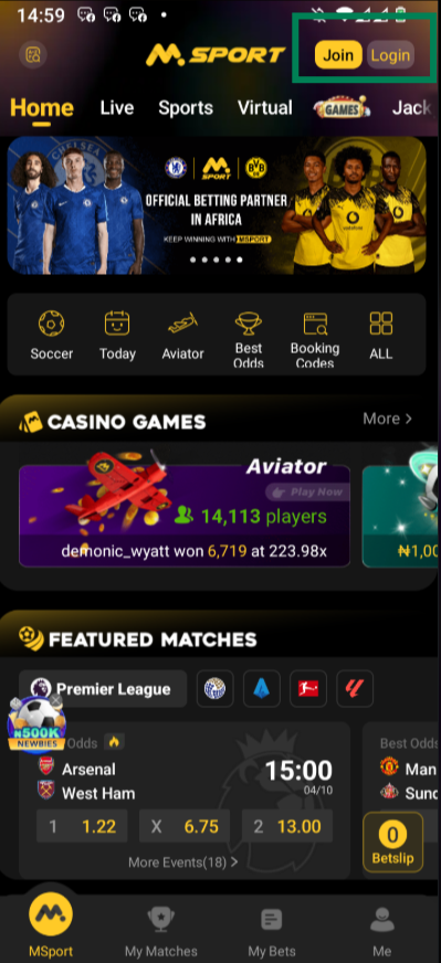 login to your Msport account