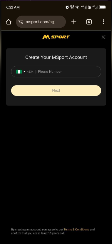 2. Already Existing Users can Login by Visit https://www.msport.com/ng/web input Registered number and password then Click LOGIN