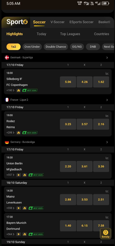 Users can access it via web or app, with features like quick deposits, live streaming (where available), and promotions such as welcome bonuses. The platform's dark-themed interface is intuitive, making it easy to navigate markets like 1X2 and GG/NG. These markets are often highlighted in the soccer section, where most activity occurs.