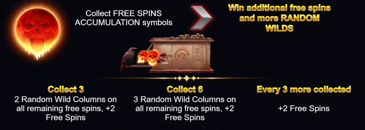 Collect 6 Accumulation symbols → 3 columns filled with Wilds appear each spin, and you get 2 more free spins.