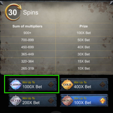 To start a new mission, tap the tab showing the level you want (Bronze, Silver, Gold, or Platinum). Your current mission will be saved automatically and can be resumed later from the “Saved Missions” tab. If you already have a mission of the same level, category, and bet that isn’t finished, it will resume when you select it.