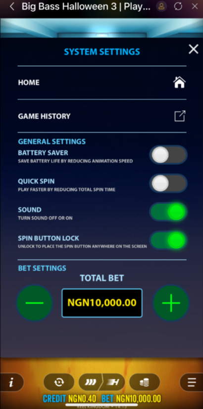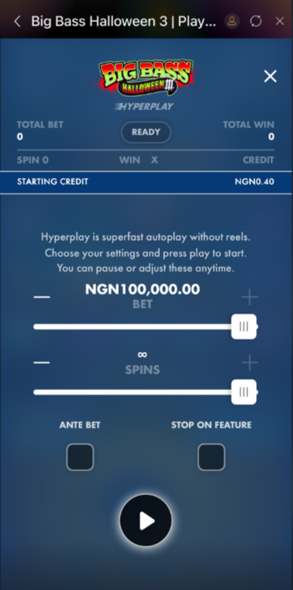 Big Bass Hallowen 3 a 5-reel, 3-row video slot game with 10 paylines, featuring Money Symbol, Free spin, Max Win, Ante Bet, and Buy Feature. All lines are always played as the lines determines the winning rates.