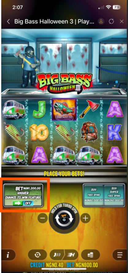 15x bet multiplier: You have a better chance of getting the FREE SPINS bonus naturally because there are more SCATTER symbols on the screen. However, you can’t buy the FREE SPINS feature directly in this mode.