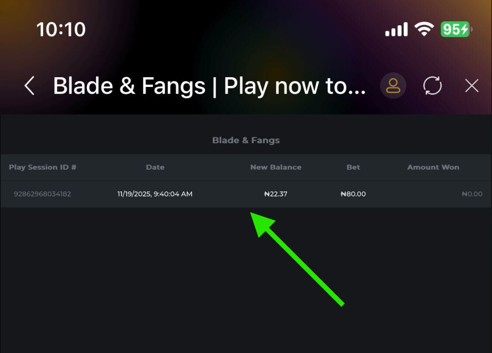 *This section provides a detailed log of your play sessions, including Play Session ID, Date, New Balance, Bet Amount, and Amount Won.