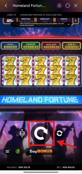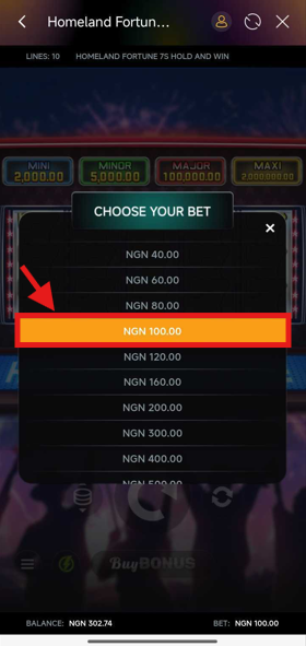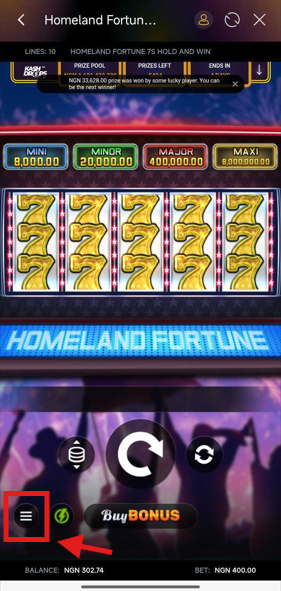 Once you’re logged in, go to the casino section of the MSport platform. You can find Homeland Fortune 7s Hold and Win by either browsing through the available games or using the search feature to locate it directly.