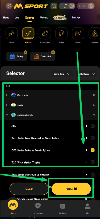 8. After the match, check your bet slip under MY BETS or Msport account to see if it’s settled as Win or Lose.