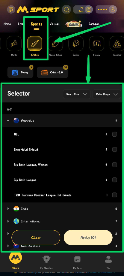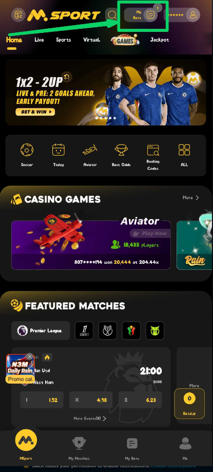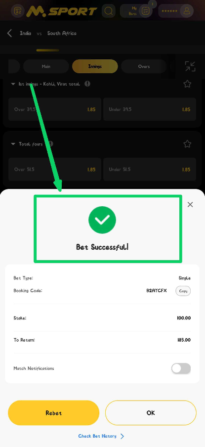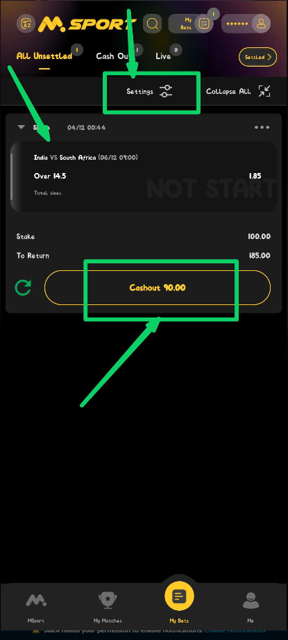 8. After the match, check your bet slip under MY BETS or Msport account to see if it’s settled as Win or Lose.