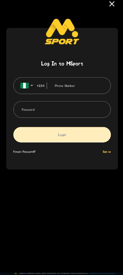 1. Open Msport (app or website) and log in to your account.