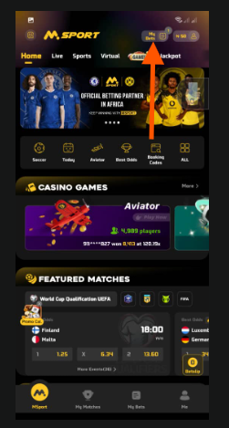 To check the bet history kindly click on my bets as shown in the screenshots below