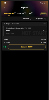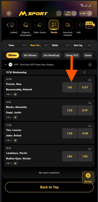 If you select “Home | 1st Set Winner”, you are predicting that Novak Djokovic will win the first set, regardless of what happens in the rest of the match.