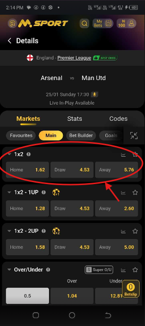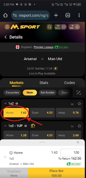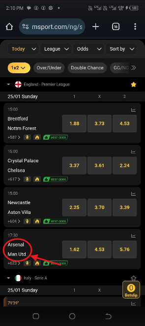 6. Select The Match You Want To Place Bet On.