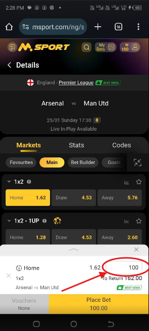 For Example, Arsenal VS Manchester United match: