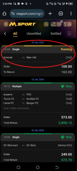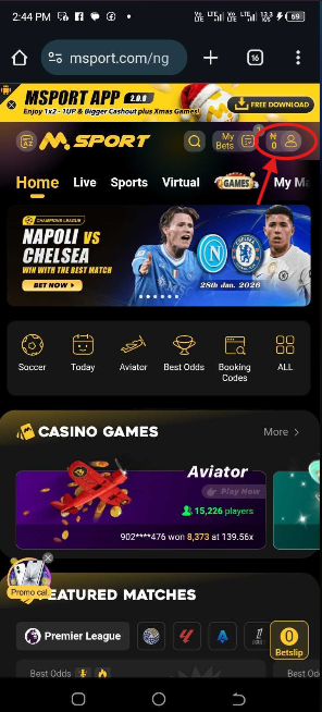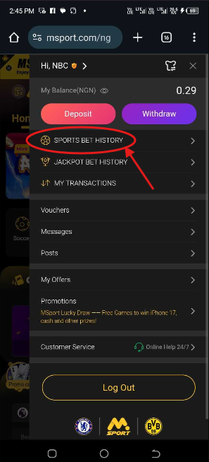 1. Log into Your Msport Account.