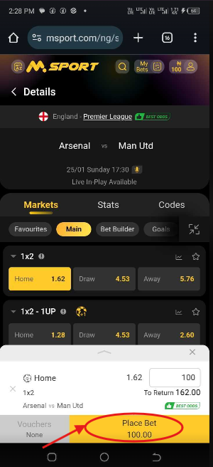 10. Click On Place Bet.
