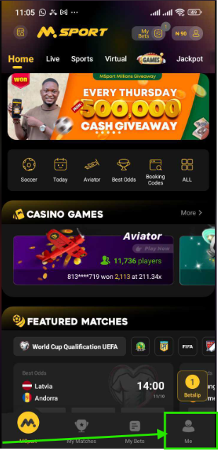 login to your Msport account