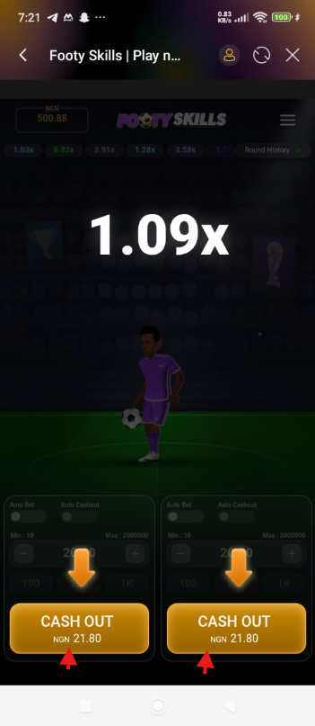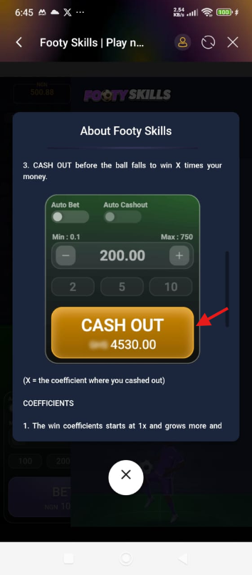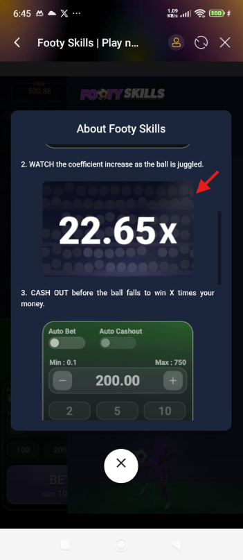 1. The win coefficients starts at 1x and grows more and more as the player continues to juggle the ball.