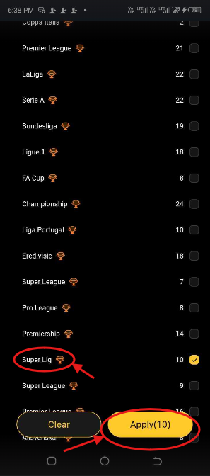 5. Select The Country/Region League or Cup Match You Want To Place Bet On And Click On Apply.