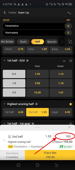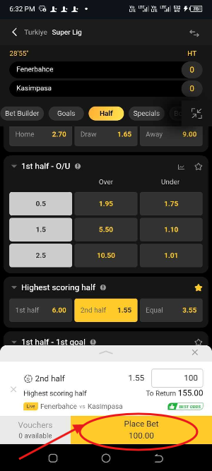 1st bet wins if the two teams scored more in the first half than in the second.