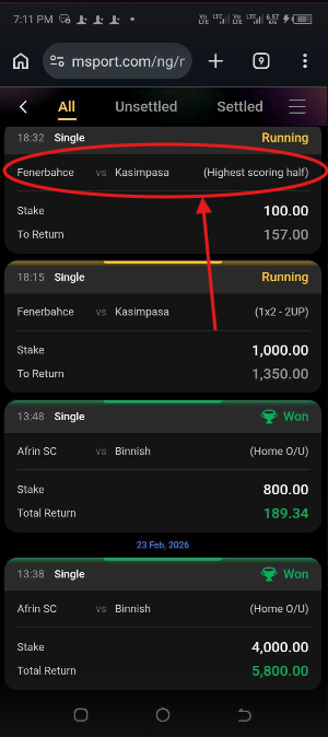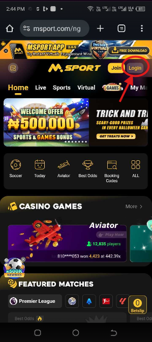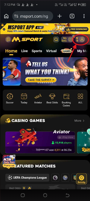 1. Log into Your Msport Account.