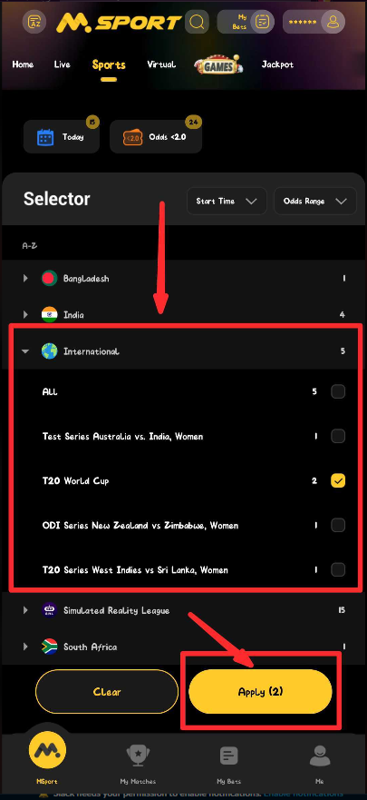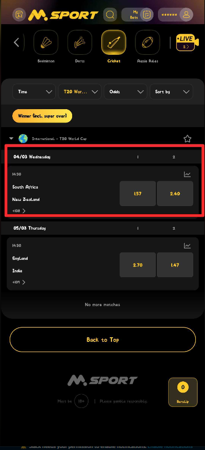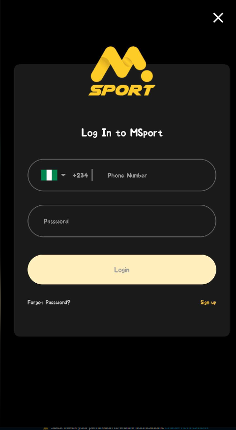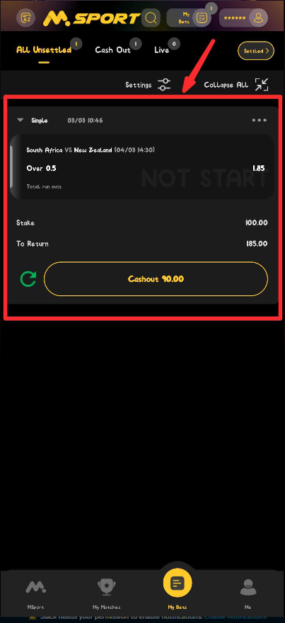 1. Log in to your Msport account (app or website).