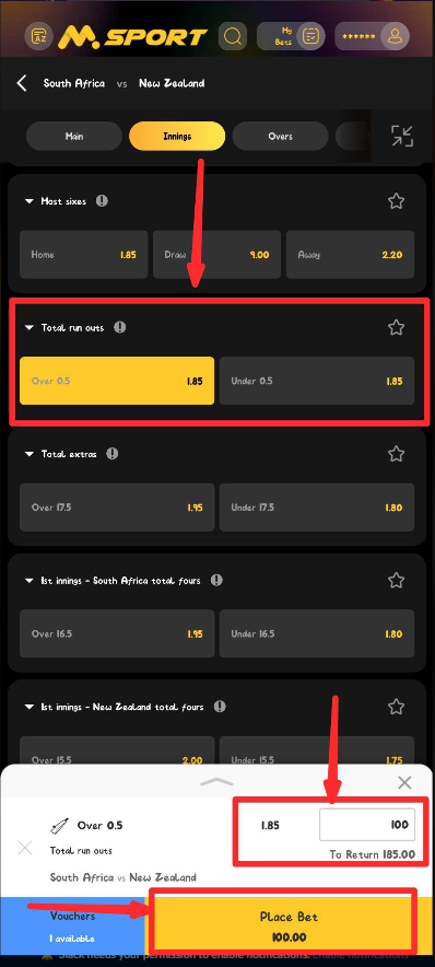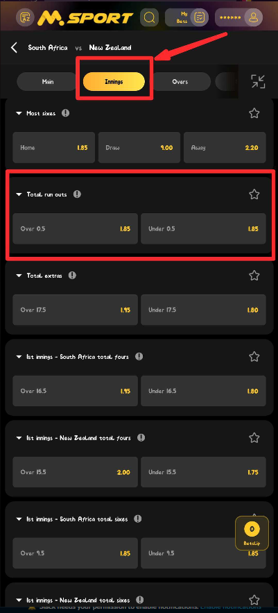 The Total Run Outs market on Msport lets you predict whether at least one run-out dismissal will occur in the game. It’s a simple but tactical market that rewards understanding of team aggression, running between wickets, and fielding sharpness.