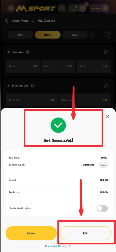 6. You can follow the process of .your bet under MY BET