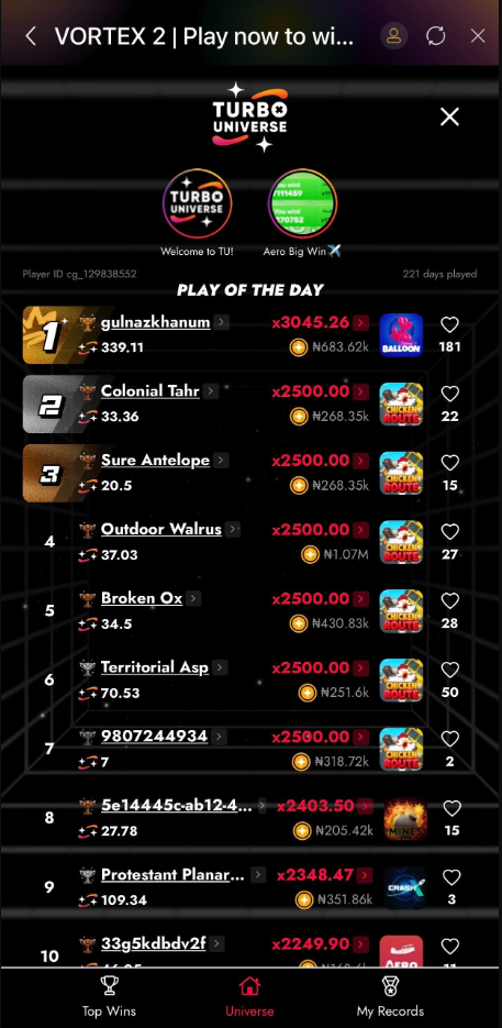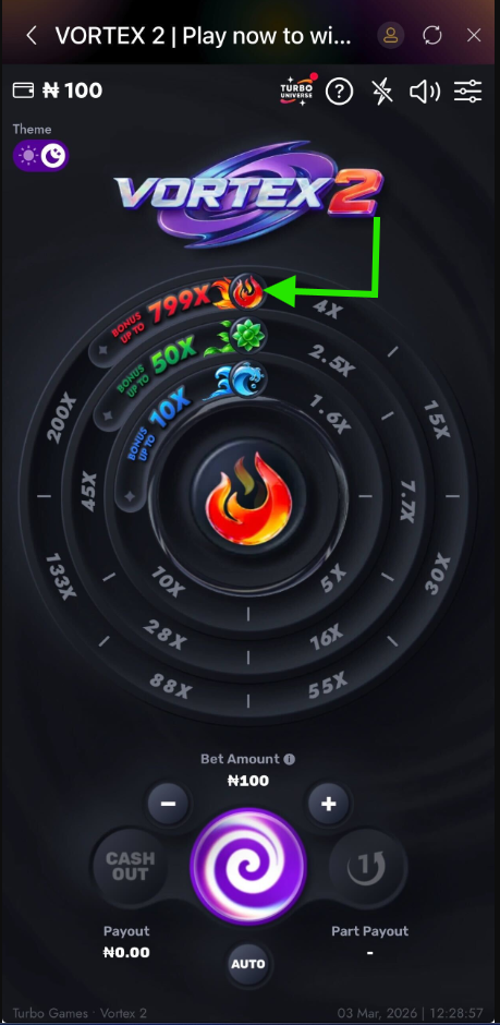 VORTEX 2 is a thrilling casino game introduced by Turbo Games through Msport, it is a game that can be played by spinning the wheel and promises to be bigger, wilder, more rewarding!
