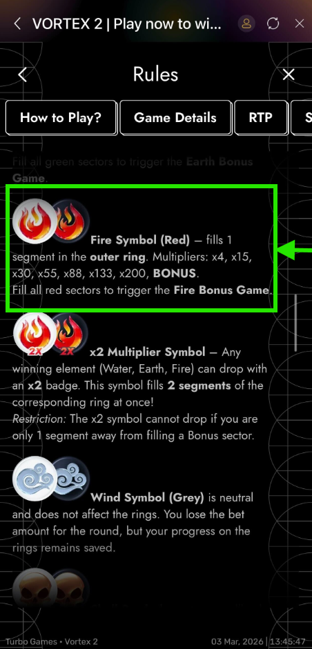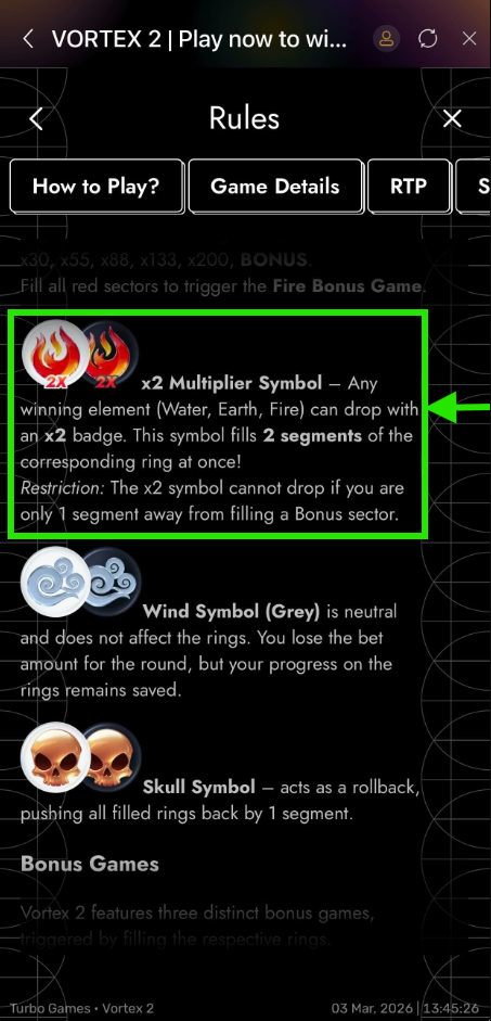 Experience Vortex 2 with x2 boosters, 3 bonus games, and wild elemental wins such as the WATER, FIRE, WIND & EARTH elements. this game guide will guide you through how to play, understanding the game symbols, unlocking special bonuses and understanding the cash out system.