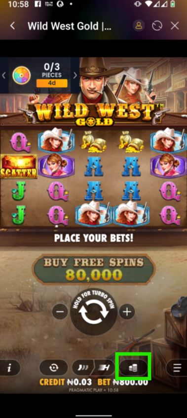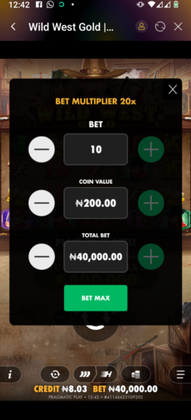 - Choose Your Bet Amount: Click the Bet icon to choose your stake using the + and – buttons. The minimum is N80.00 and the maximum is N40,000.00.