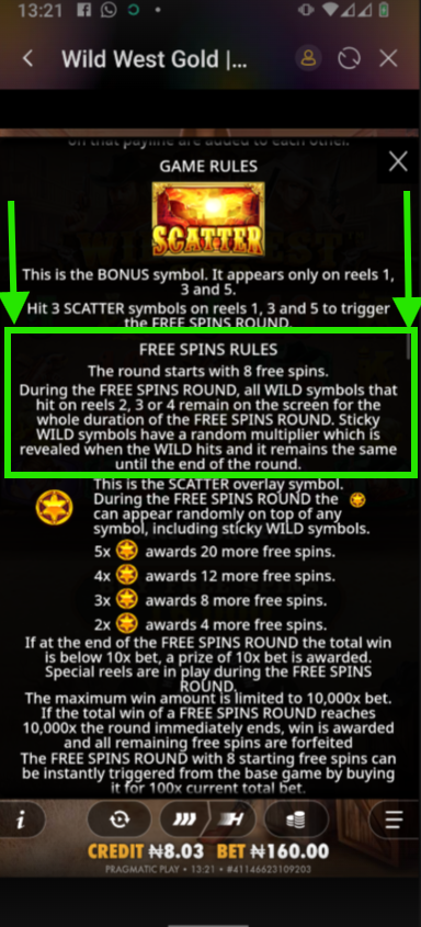 - Landing three scatter symbols (usually represented by gold bars) triggers the free spins round.