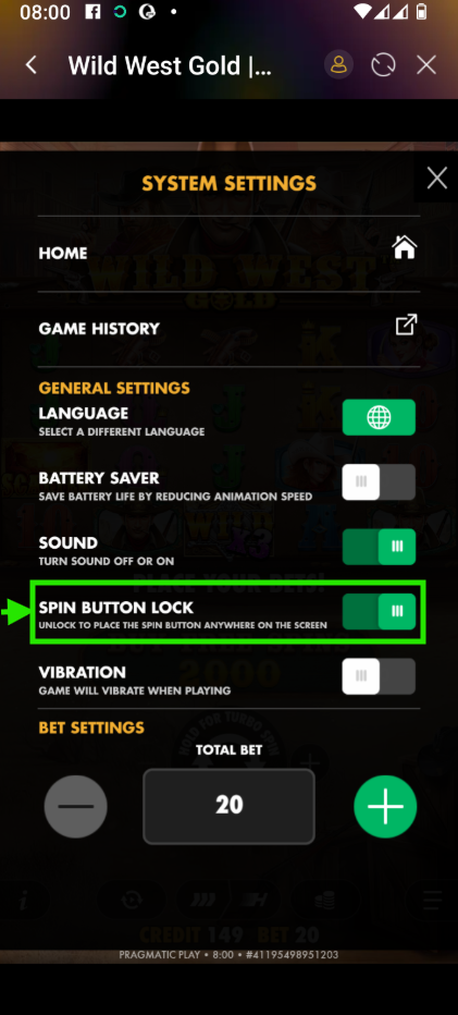 Spin Button Lock: Prevent accidental spins.