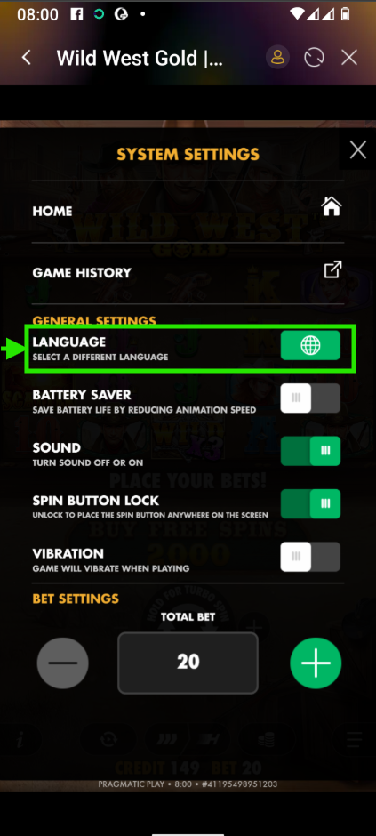 Game History: Track your bet history.