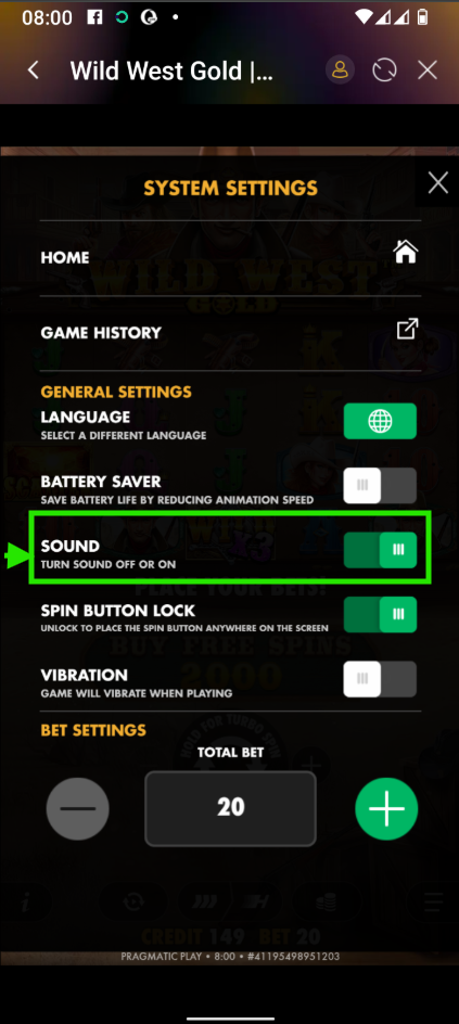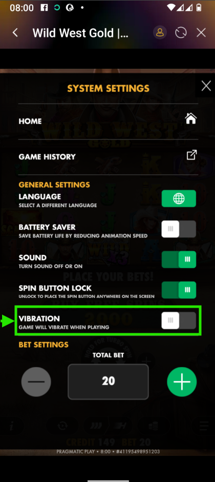 - Vibration - enable or disable vibration when playing the game.