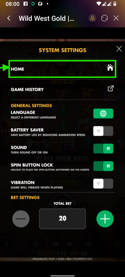 To access the Game Menu, click the Menu icon on the main screen