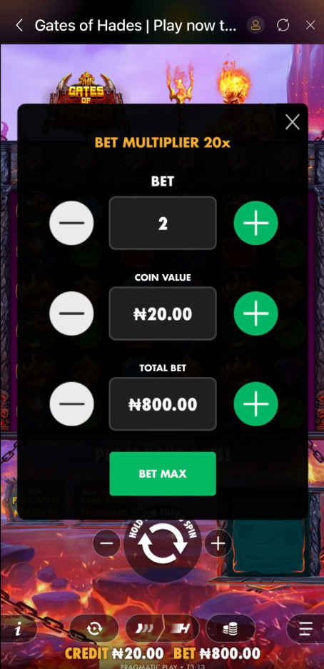 - If you purchase an in-game bonus feature (Bonus / Free Spins) in any participating game (“Bonus Buy”), your prize will be awarded before you enter the Bonus / Free Spins feature mode and will be based on the ₦1,700.00 value. Bonus Buy availability depends on your jurisdiction.