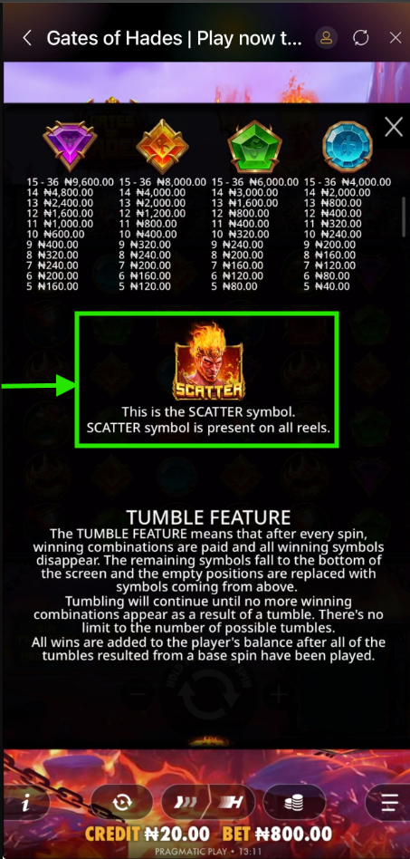 GATES OF HADES is a thrilling 6-reel, 5-row, 6-line video slot game, featuring FREE SPINS , TUMBLE FEATURE, WILD & SCATTER SYMBOL.
