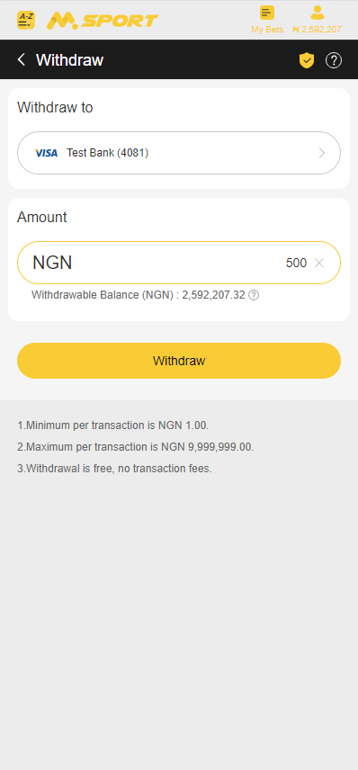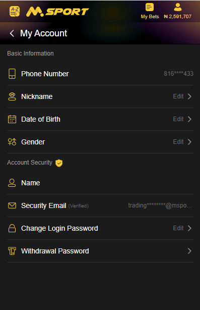 If you do not setup a MSport Account Name before, you will be required to set your MSport Account Name when you initiate a withdrawal.