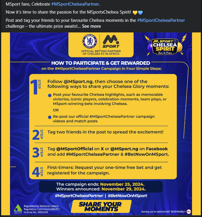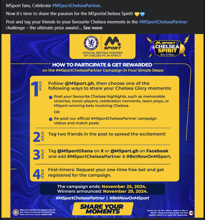 MSport social media campaign #MSportChelseaPartner in NG & GH region