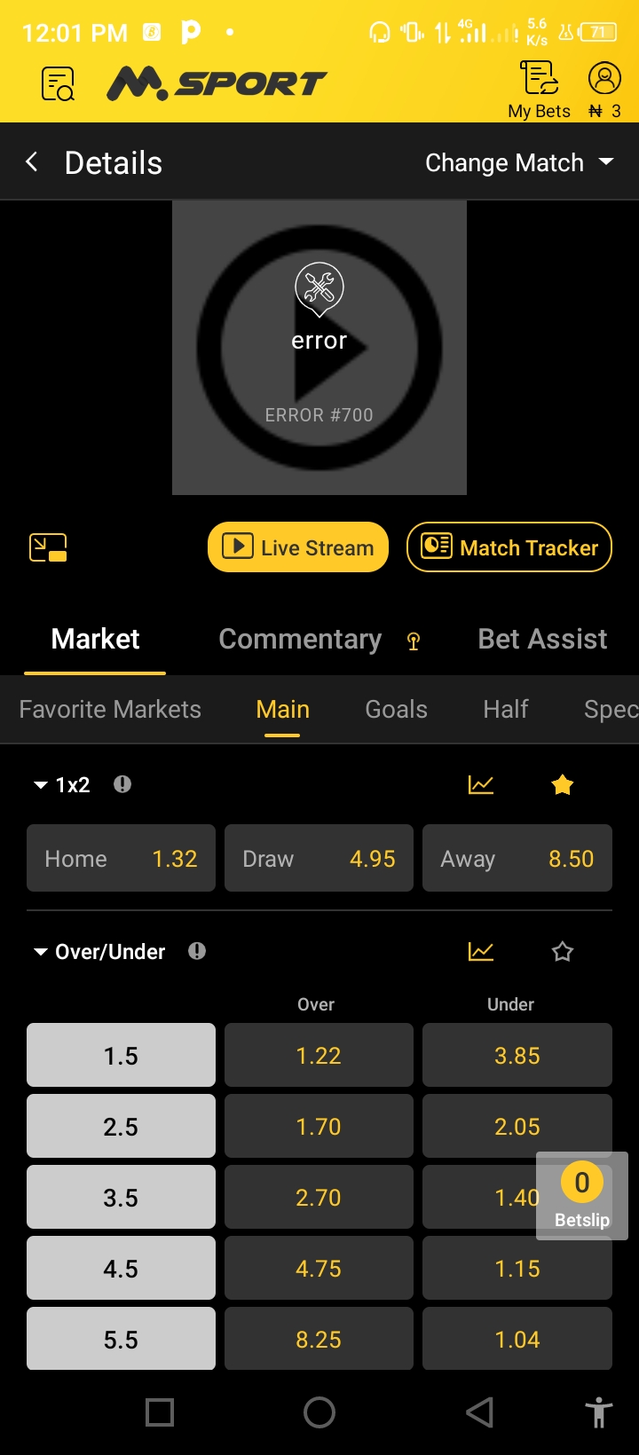 1st, the Live Stream is only available in the African Countries. The customers who try to access the Live Sream feature from other continents can not access Live Stream on MSport platform.